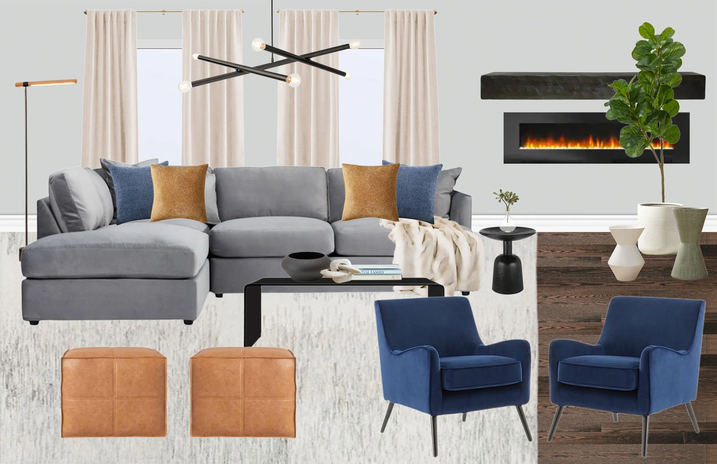 This client just moved in with her significant other and wanted her space to feel more “grown-up” and put together. I used her current sofa and sourced modern and interesting pieces to make a cohesive space that celebrated this milestone of their season in life. I blended clean lines in the coffee table and lighting with rich textures of velvet and leather to create contrast yet remain welcoming!